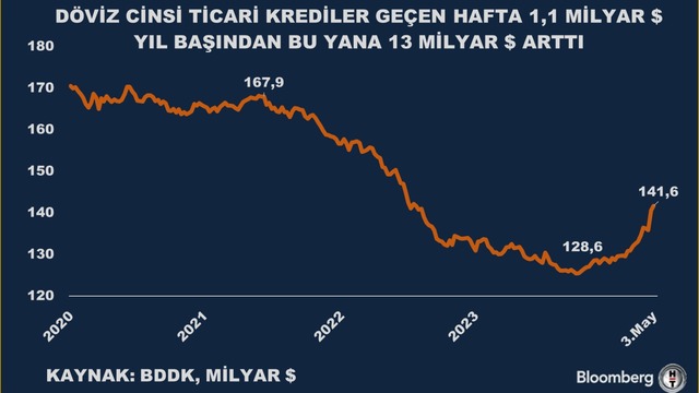 Son artışla birlikte döviz cinsi ticari kredilerin büyüklüğü 141,6 milyar dolara yükseldi. Yılbaşından bu yana döviz cinsi kredilerde artış 13 milyar doları buldu. Döviz cinsi kredilerde büyüklük 128,6 milyar dolara kadar gerilemişti.