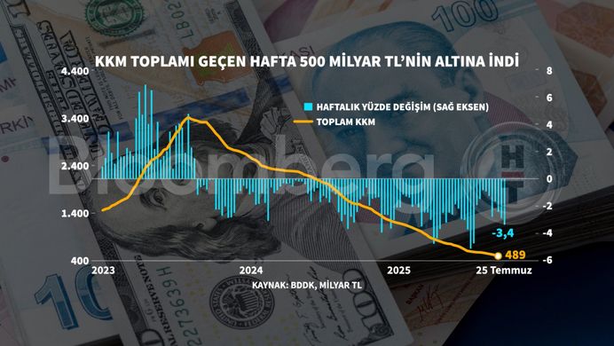 Kur Korumalı Mevduat, 25 Temmuz haftasında 489 milyar 188 milyon TL'ye düştü.
