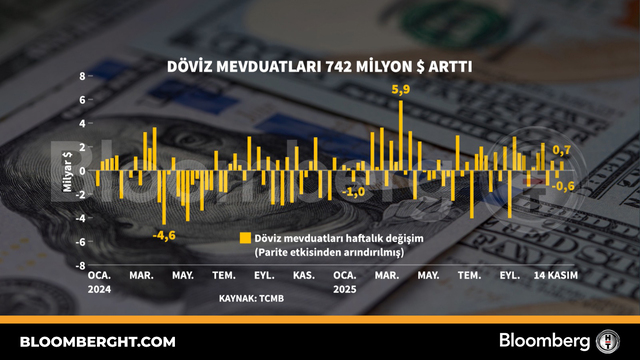 Bloomberg HT Grafik Döviz mevduatları 742 milyon dolar arttı Döviz mevduatları 742 milyon dolar arttı Giriş: 20 Kasım 2025, Perşembe 19:34 Güncelleme: 20 Kasım 2025, Perşembe 19:34