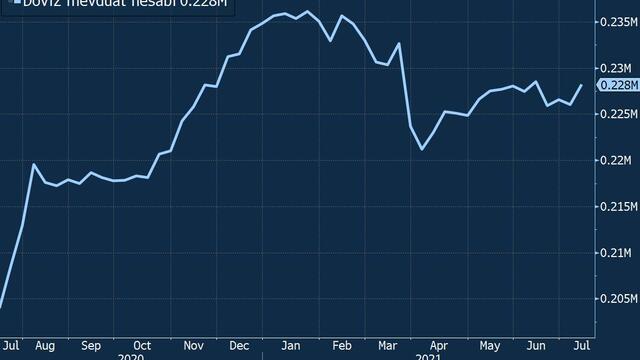 Türkiye Cumhuriyet Merkez Bankası verilerine göre gerçek ve tüzel kişilerin döviz mevduatları 9 Temmuz haftasında yeniden 228 milyar doların üzerine çıktı.