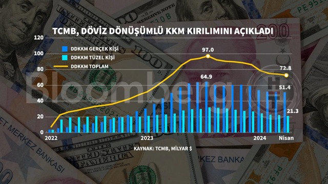 Nisan ayındaki stokun 51,4 milyar doları gerçek kişilerin hesaplarından oluştu. Diğer deyişle dövizden dönüşümlü kur korumalı mevduat stokunda gerçek kişilerin payı yüzde 71 düzeyinde oldu.