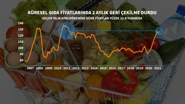 Birleşmiş Milletler Gıda ve Tarım Örgütü (FAO) verilerine göre, küresel gıda fiyatları, nebati yağ, tahıl ve et fiyatlarındaki yükselişlerin etkisi ile Ağustos ayında geçen yılın aynı dönemine göre yüzde 33 arttı. Öte yandan olağanüstü hava koşulları, artan navlun ücretleri ve gübre maliyetleri, nakliye sorunları ve işgücü darlığının sorunu daha da büyütmesinden dolayı bu durumun daha da kötüleşmesi bekleniyor.
