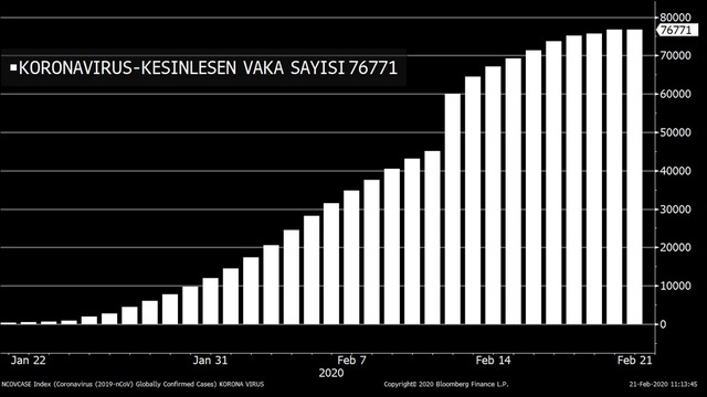 Çin'in Hubey eyaletine bağlı Vuhan kentinde ortaya çıkan yeni tip koronavirüsün (Kovid-19) dünya genelinde bulaştığı kişi sayısı 76 bin 700'ü geçti