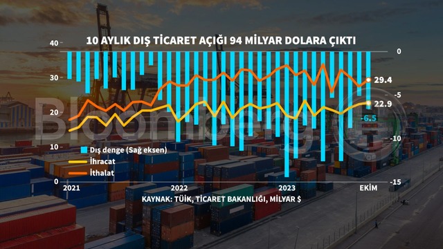 Ocak-Ekim döneminde dış ticaret açığı yüzde 3,2 artarak 91 milyar dolardan, 93,9 milyar dolara yükseldi. İhracatın ithalatı karşılama oranı 2022 Ocak-Ekim döneminde yüzde 69,7 iken, 2023 yılının aynı döneminde yüzde 69,1'e geriledi.