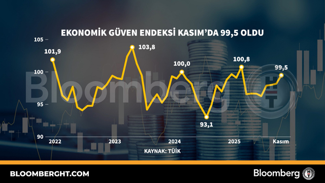 Bloomberg HT Grafik Ekonomik güven endeksi Kasım'da 99,5 oldu Ekonomik güven endeksi Kasım'da 99,5 oldu Giriş: 27 Kasım 2025, Perşembe 15:42 Güncelleme: 27 Kasım 2025, Perşembe 15:42