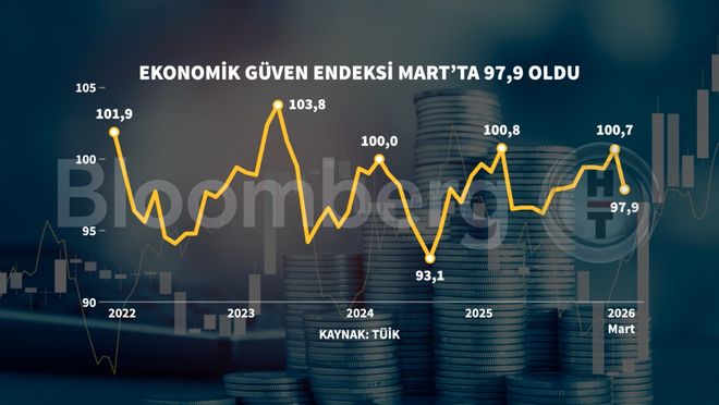 Ekonomik güven endeksi, martta aylık bazda yüzde 2,8 azalışla 97,9 değerini aldı.