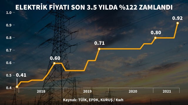 Enerji Piyasası Düzenleme Kurumunun açıklamasına göre, elektrik üretiminde oluşan maliyet artışları nedeniyle tarifelerde değişikliğe gidildi.