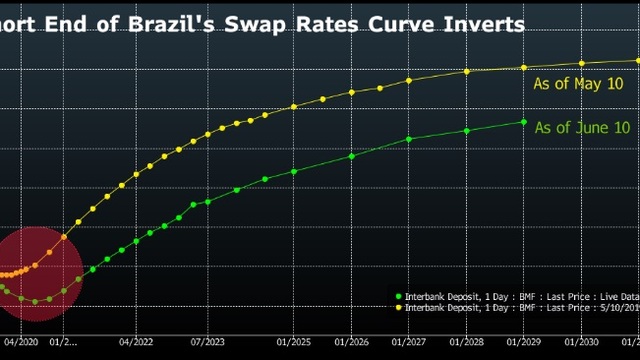 Brezilya'da swap getiri eğrisinin yakın kısmı Haziran başında tersine döndü. Zayıf ekonomik faaliyeti gösteren veriler gösterge tahvilin rekor seviyeye gerileyeceği yönündeki beklentileri artırdı.