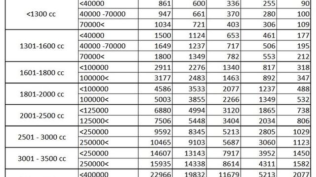 Resmi Gazete'de bugün yayınlanan son MTV tarifesine göre, tescil tarihi 2018 öncesi olan araçlar için çıkan tablo ise şöyle;