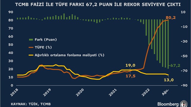 Ağustos ayında gelen faiz indirimi ve enflasyonda devam eden yükseliş ivmesi politika faizi ile enflasyon arasındaki makasın rekor seviyeye çıkmasına neden oldu.