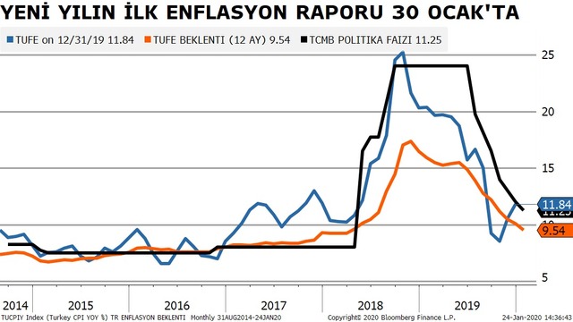 Türkiye Cumhuriyet Merkez Bankası (TCMB), 2020'nin ilk Enflasyon Raporu'nu 30 Ocak Perşembe günü Ankara'da açıklayacak