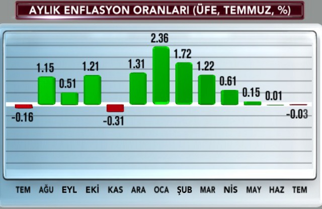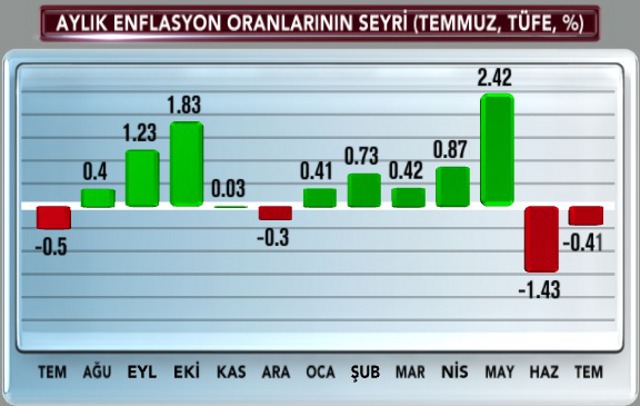 • TÜİK'in Temmuz ayı enflasyon verilerine göre, TÜFE yüzde 0.41; ÜFE ise yüzde 0.03 gerileme kaydetti