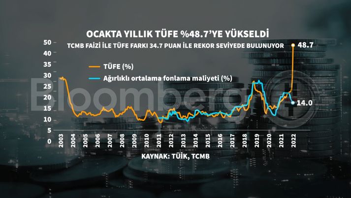 Unicredit, müşterileriyle paylaştığı bir notta Ocak ayında enflasyonun aylık bazda yüzde 10,7 artarak yıllık yüzde 48,2’ye çıkmasını beklediklerini söylemişti.