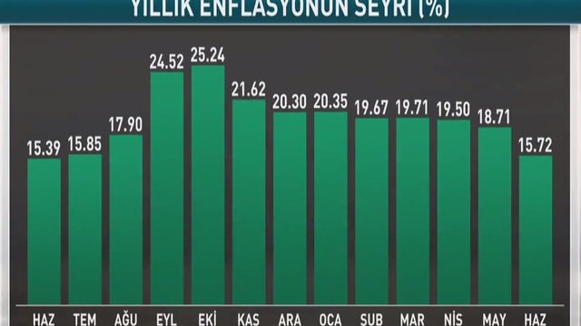 Enflasyon Haziran'da yüzde 0.03 artarken, yıllık bazda da yüzde 15.72 ile Haziran 2018'den beri en düşük seviyeye gerilemişti.