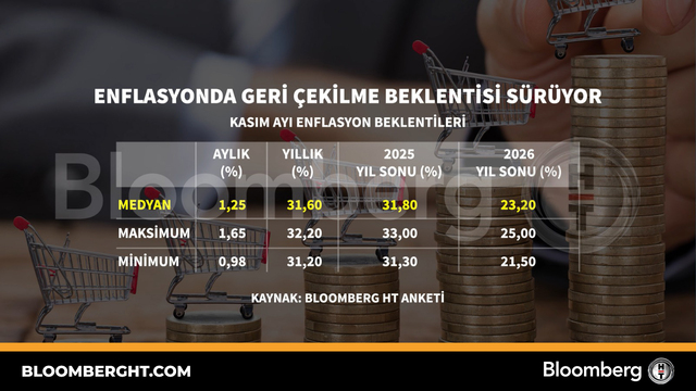 Bloomberg HT Grafik Enflasyonda geri çekilme beklentisi sürüyor Enflasyonda geri çekilme beklentisi sürüyor Giriş: 27 Kasım 2025, Perşembe 15:42 Güncelleme: 27 Kasım 2025, Perşembe 15:42