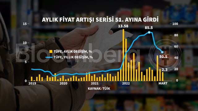 Türkiye'de aylık enflasyon serisi Mart ayında da devam ederek 51. aya yükseldi.