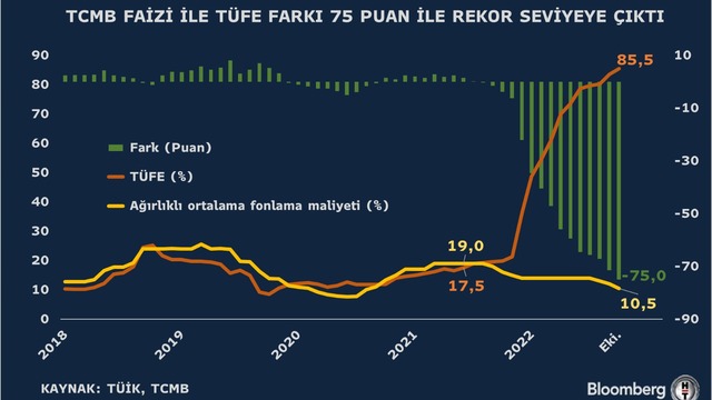 Veriler enflasyonla Türkiye Cumhuriyet Merkez Bankası politika faizi arasındaki makasın rekor seviyeye yükseldiğini gösterdi.
