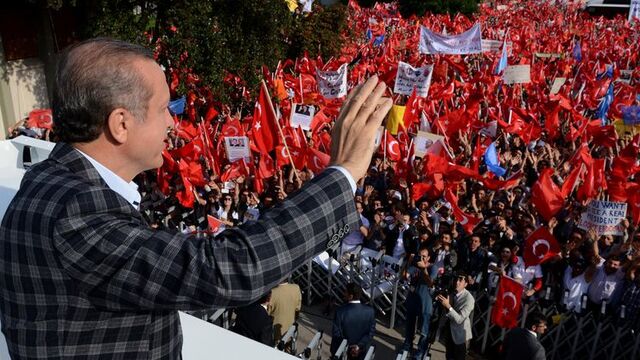 Konuşmasına, "Coşkunuz, heyecanınız, ahde vefanız için sizlere kalbi şükranlarımı sunuyorum" diyerek başlayan Erdoğan, kendilerinin yola kefenlerini giyerek çıktıklarını söyledi. Erdoğan, "Bu can bu tende oldukça Allah'tan başka kimseye verilecek hesabımız yoktur. Bize bazı marjinal gruplar değil, bize millet hesap sorar. Milletin de hesap yeri sandıktır, sandıkta sorar. Ve bizi millet getirdi, millet götürür. Milletten başka bu noktada kimsenin bizi götürmeye gücü yetmez" ifadesini kullandı.