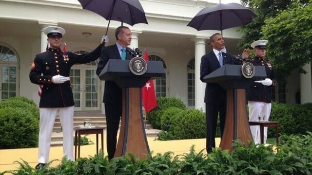 Gazetecilerin sorularını yanıtlarken yağmurun şiddetini artırması üzerine Obama, "Bugün hava bizle işbirliği yapmıyor. İyi bir ev sahibi olduğumdan emin olmak istiyorum. Şemsiye ister misiniz?" diye Başbakan Erdoğan'a sordu.
