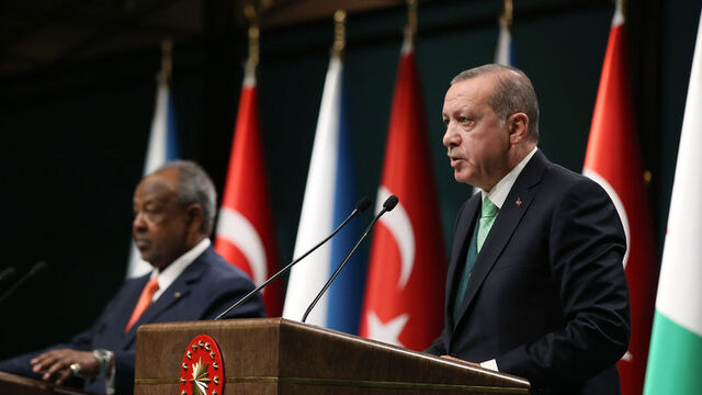 Cumhurbaşkanı Recep Tayyip Erdoğan, Cibuti Cumhurbaşkanı İsmail Omar Guelleh ile Cumhurbaşkanlığı Külliyesi'nde görüşmesinin ardından ortak basın toplantısı düzenledi.