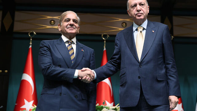 Cumhurbaşkanı Erdoğan ve Pakistan Başbakanı Şahbaz Şerif, Cumhurbaşkanlığı Külliyesi'ndeki baş başa ve heyetler arası görüşmeler ile anlaşmaların imza töreninin ardından ortak basın toplantısı düzenledi.