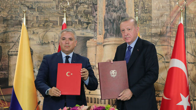 Basın toplantısı öncesinde Türkiye Cumhurbaşkanı Erdoğan ile Kolombiya Cumhurbaşkanı Marquez, Türkiye Cumhuriyeti ile Kolombiya Cumhuriyeti Arasındaki Stratejik İşbirliği ve Ortaklığa Dair Ortak Bildiri'ye imza attı.