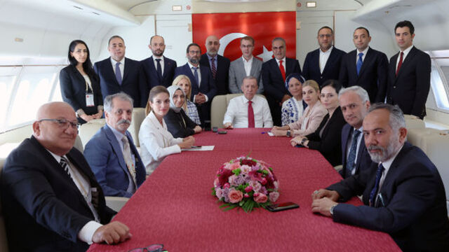Cumhurbaşkanı Recep Tayyip Erdoğan, Kıbrıs Barış Harekatı'nın 50. yılı kutlama programına katılmak üzere gittiği Kuzey Kıbrıs Türk Cumhuriyeti'nin (KKTC) başkenti Lefkoşa'dan dönüşünde uçakta gazetecilere açıklamalarda bulundu ve soruları yanıtladı.