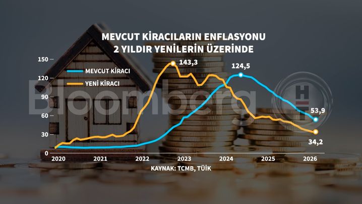Türkiye Cumhuriyet Merkez Bankası (TCMB) verilerine göre, yeni kiracıların kira endeksinde yıllık artış, mevcut kiracıların yıllık kira enflasyonunun altında.