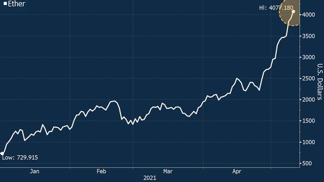 En büyük ikinci kripto para olan Ethereum, pazartesi günü 4 bin dolar seviyesini aşarak 2021 yılında değerini dörde katlamış oldu.