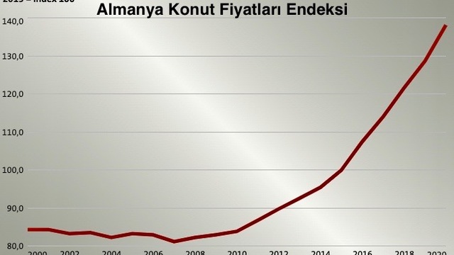 Commerzbank'ın yakın tarihli bir çalışmasında konut fiyatlarının 2021'de ortalama yüzde 10,5 artması bekleniyor. Emlak piyasasındaki mevcut patlama, istatistiklerin başlamasından bu yana en uzun süreli olanı. Uzmanlar, 1970 ve 1990'ların başındaki fiyat artışı dönemlerinin her biri yaklaşık sekiz yıl sonra sona ererken, son dönemdeki fiyat artışının ise on yıldır devam ettiğine dikkat çekiyorlar.