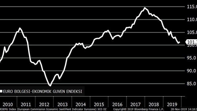 Euro Bölgesi'nde Kasım ayı ekonomik güven endeksi 101.3'e yükseldi