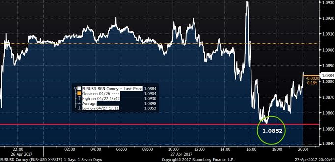 Draghi, Euro bölgesinde ekonomik toparlanmanın "artan biçimde sağlam", ekonomik görünüme ilişkin risklerin de aşağı yöne eğilimli olmakla birlikte daha dengeli olduğunu söyledi. Draghi, açıklamasında, kaydedilen ilerlemeye rağmen enflasyon beklentilerinin baskı altında kalmaya devam ettiğini ve henüz ikna edici bir yukarı trend göstermemiş durumda olduğunu belirterek Avrupa Merkez Bankası'nın tek zorunluluğu olan fiyat istikrarına dikkat çekti. Euro, Fransa'da yapılan Pazar günkü seçimlerin ardından haftaya yükselişle başlamışken, Perşembe günü çoğu büyük para karşısında zayıfladı.