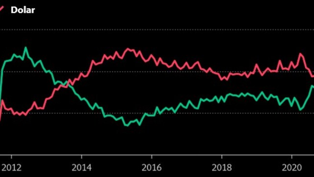 Ticaret gerginlikleri, pandemi temelli durgunluk ve siyasi uyumsuzluklar doların uluslararası ödemelerdeki payı üzerinde ciddi bir baskı oluşturdu. ABD’nin para birimi Mart ayındaki zirvesinden sonra yüzde 11’den fazla geriledi ve analistler doların daha fazla değer kaybetmesini bekliyor.