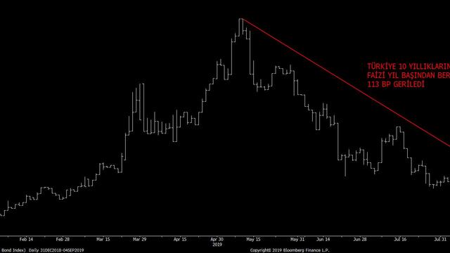 Bu yılın Mayıs ayında ABD - Çin ticaret savaşlarının alevlenmesine bağlı olarak küresel piyasalarda risk iştahının azalması ve gelişmekte olan ülke varlıklarının satış baskısı altında kalmasıyla 9 Mayıs kapanışında % 21.73'le zirveyi gören 10 yıllık tahvilin faizi 27 Ağustos'tan beri kademeli düşüşe geçti ve % 17.18'lerden % 15.30'lara geriledi. 10 yıllık tahvil faizi geçen yıl Ağustos ayında yaşanan kur şokuyla % 22'leri görmüştü.