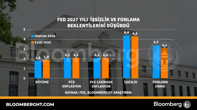 Bloomberg HTGrafikFed 2027 yılı işsizlik ve fonlama beklentilerini düşürdü