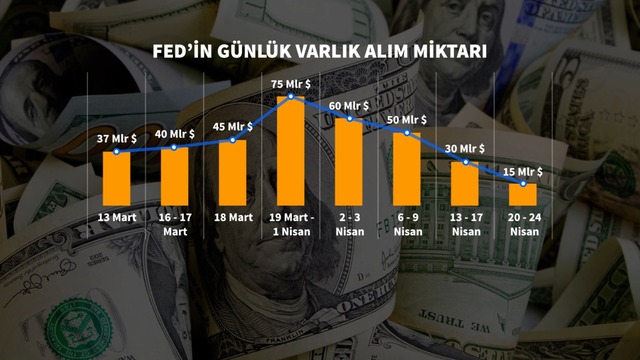 Fed geçen ay başlayan sınırsız parasal genişleme programı altında planladığı Hazine tahvili alımlarının hızını düşürdü. Koronavirüs pandemisi esnasında piyasanın düzgün işlemesini sağlamak için altı hafta boyunca günlük operasyonlarda 1.4 trilyon dolardan fazla Hazine tahvili alan banka, Cuma günü 27 Nisan - 1 Mayıs arasında 10 milyar dolarlık bir tempo ile alım yapacağını açıkladı.