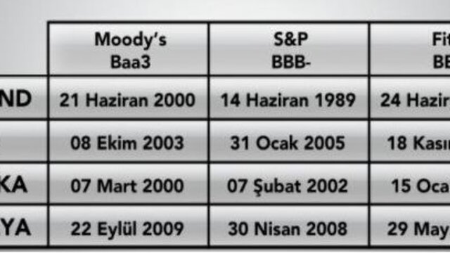Bu noktada diğer gelişen ülkelerdeki yatırım yapılabilir seviye tarihlerini inceledik. Brezilya cephesinde S&P önce davranırken, Fitch’in kararı 1 ay sonra S&P’yi takip etmiş. Rusya örneğinde ise ilk adım Moody’s tarafından gelmiş.
