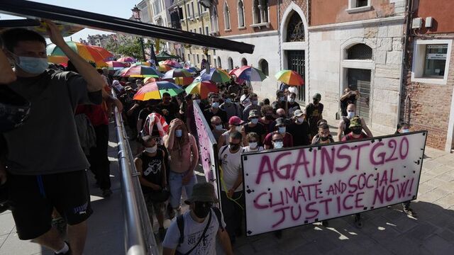 G20 Maliye bakanlarının toplantısı, Venedik'in bir diğer muhiti Zattere'de protesto edildi. G20 toplantılarına ve izlenen politikalara tepki gösteren yaklaşık 700 kişinin katıldığı gösteride zaman zaman gergin anlar yaşandı.Ellerinde renkli şemsiyeler ve "G20'ye hayır" yazılı dövizler taşıyan göstericiler ile güvenlik güçleri arasında arbede çıktı. Bazı protestocuların polise fişek attığı, polisin de göstericilere müdahale ettiği belirtildi.