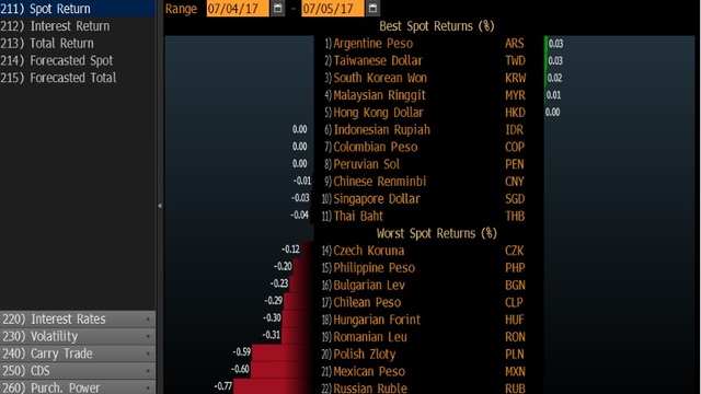 Güney Afrika Randı, ülkede iktidarın merkez bankasının tamamen devlete ait olmasını istediğine ilişkin raporun ardından gelişen ülke paralarındaki kayıpların başını çekti. Rus Rublesi, ülkenin OPEC kısıtlamalarının derinleşmesine karşı çıktığını bildirmesinden sonra düşüşe geçti. Bu açıklamanın ardından, Brent Petrol ve Batı Teksas Petrolü (WTI) geriledi.