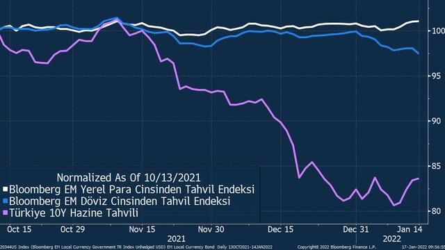 Gelişmekte olan ülke merkez bankalarının faiz artırımlarına gelişmiş ülkelerden daha erken başlaması yerel para cinsinden ihraç edilen tahvillerin fiyatlarını destekledi. Türkiye 10 yıllık Hazine tahvillerinin fiyatı ise faiz indirimleriyle beraber son üç ayda yüzde 16 civarında düştü.