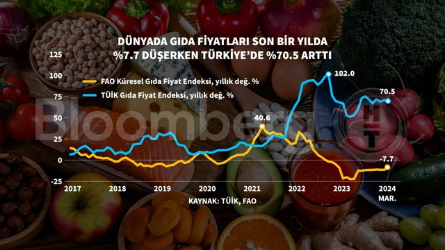 Türkiye'de ise Mart ayında gıda enflasyonunda yüzde 70,5 seviyesi kaydedildi. Böylelikle küresel gıda fiyatlarıyla Türkiye'deki gıda fiyatları arasındaki makas Mart ayında da devam etti.