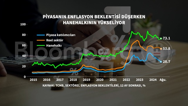 TCMB'nin sektörel enflasyon beklentileri anketinin Ağustos sonuçlarına göre, 12 ay sonrası yıllık enflasyon beklentileri, piyasa katılımcıları için 1,3 puan azalarak yüzde 28,7 seviyesine, reel sektör için 1,2 puan azalarak yüzde 53,8 seviyesine gerilerken, hanehalkı için 1,1 puan artarak yüzde 73,1 seviyesine yükseldi.