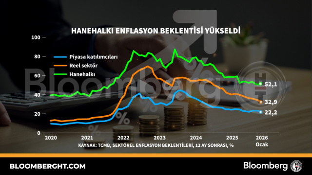 Bloomberg HT Grafik Hanehalkı enflasyon beklentisi yükseldi Hanehalkı enflasyon beklentisi yükseldi 26 Ocak 2026, 19:13 Güncelleme : 26 Ocak 2026, 19:13