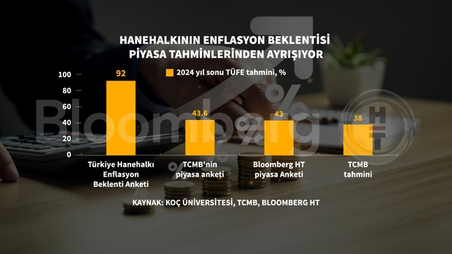 Hane halkının yıl sonu beklentisinin piyasa beklentilerinin iki katı olduğu görülüyor. TCMB'nin kendi tahmini yıl sonunda enflasyonun yüzde 38 olacağına işaret ederken, TCMB'nin son piyasa katılımcıları anketinde ise yıl sonu beklentisi yüzde 43,6 olarak belirlenmişti. Bloomberg HT'nin son enflasyon anketinde ise piyasa katılımcıları yıl sonu için yüzde 43'lük beklenti girmişlerdi.