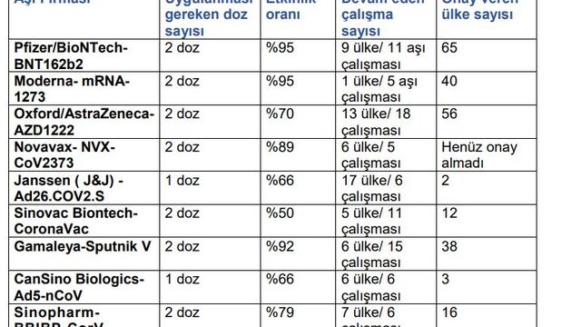 Dünya genelinde ilaç firmalarının geliştirdiği 89 farklı aşı adayı, 228 aşı deneme çalışması ve onay alan 12 aşının olduğu biliniyor.