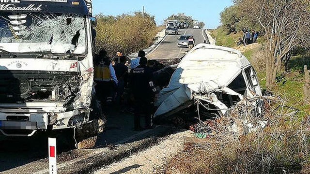 Bir süre sonra aracın kontrolünü yitiren minibüs sürücüsü karşı yönden gelen kamyonla çarpıştı. Kamyonun altına girip sürüklenen minibüs, hurda yığınına döndü. Kazada, 10 göçmen olay yerinde yaşamlarını yitirirken, 1'i minibüs sürücüsü 7 kişi de ağır yaralandı.