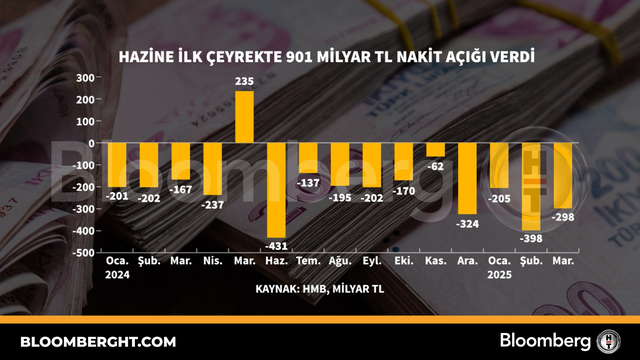 Bloomberg HTGrafikHazi̇ne i̇lk çeyrekte 901 mi̇lyar TL naki̇t açığı verdi̇