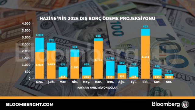 Bloomberg HT Grafik Hazine'nin 2026 dış borç ödeme projeksiyonu Hazine'nin 2026 dış borç ödeme projeksiyonu 04 Şubat 2026, 14:42 Güncelleme : 04 Şubat 2026, 14:42