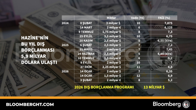 Bloomberg HTGrafikHazine'nin bu yıl dış borçlanması 5,9 milyar dolara ulaştı