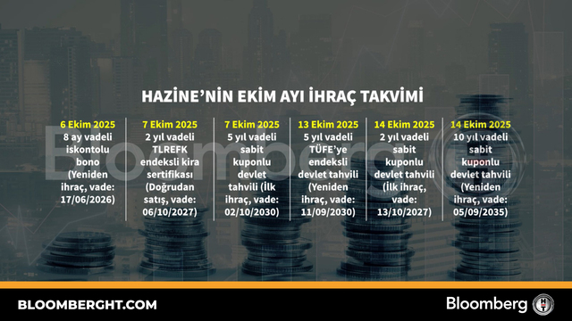 Bloomberg HT Grafik Hazine'nin Ekim ayı ihraç takvimi Hazine'nin Ekim ayı ihraç takvimi Giriş: 01 Ekim 2025, Çarşamba 20:20 Güncelleme: 01 Ekim 2025, Çarşamba 20:20 REKLAM advertisement3ndparty